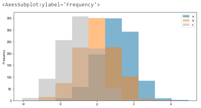 df.plot.hist(alpha=0.5) # alpha設(shè)置透明度