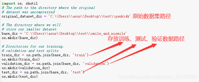 2、讀取笑臉數(shù)據(jù)集,然后將訓(xùn)練的數(shù)據(jù)和測(cè)試數(shù)據(jù)放入對(duì)應(yīng)的文件夾