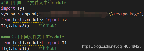 總結(jié):引用自定義模塊時,需要在引用之前添加根目錄,若將自定義的文件目錄同時添加到根目錄中如上圖所示的testpackage,編譯器會報錯但不影響程序的正常運行。