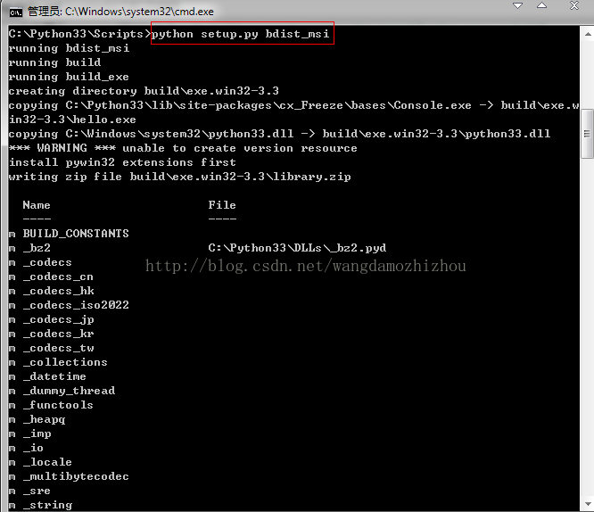 在“C:\Python33\Scripts”目錄(也就是cxfreeze命令所在的文件目錄)下運(yùn)行: