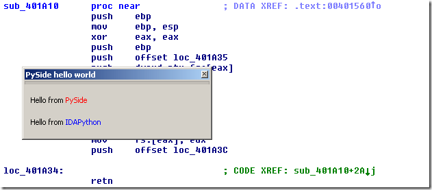 使用 IDAPython 和 PySide 編寫 Hello world UI