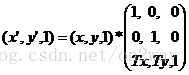 那么上述的關(guān)系怎么用一個(gè)矩陣來表示呢?一個(gè)很重要的矩陣來了,那就是變換矩陣T,并且對(duì)于二維坐標(biāo)下的點(diǎn),一般轉(zhuǎn)化為笛卡爾坐標(biāo)系下進(jìn)行計(jì)算,用一個(gè)三維點(diǎn)表示二維的,只不過把最后一項(xiàng)值置為1,這樣一個(gè)二維坐標(biāo)(x,y)就變?yōu)?nbsp;(x,y,1)了。在把上述的平移等式關(guān)系轉(zhuǎn)化為矩陣形式為: