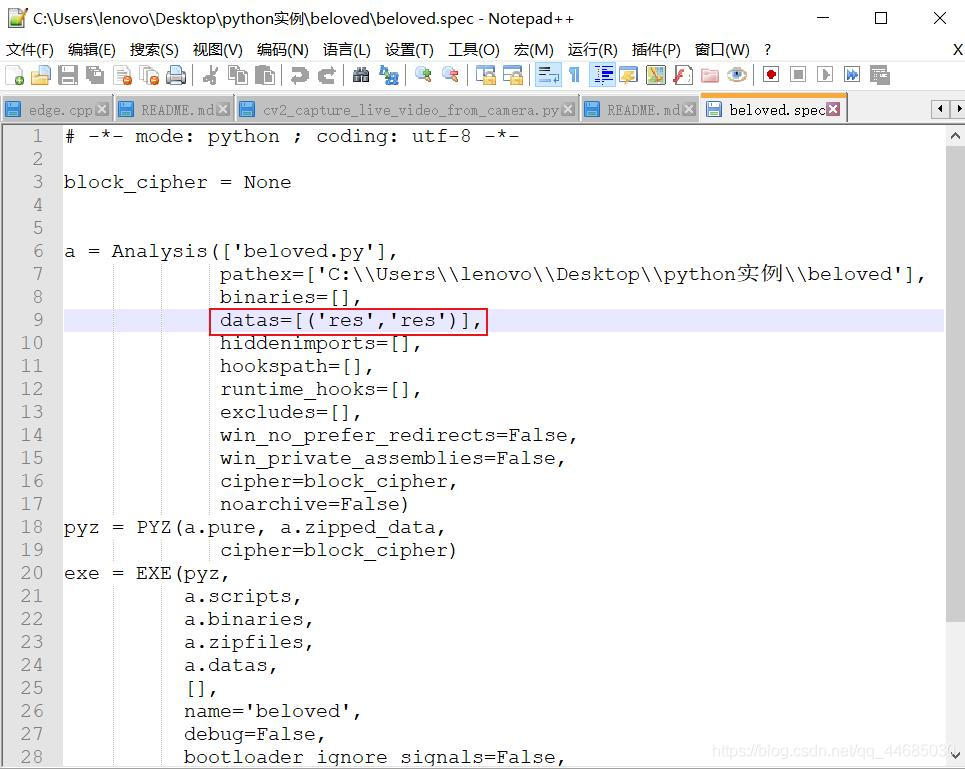 將beloved.py當(dāng)前目錄下的res目錄(及其目錄中的文件)加入目標(biāo)exe中,在運(yùn)行時(shí)放在零時(shí)文件的根目錄下,名稱為res。