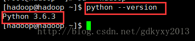 最后我們再次切換到普通用戶下,查看Python的版本,發(fā)現(xiàn)已經(jīng)是我們最新安裝的3.6.3的版本了。