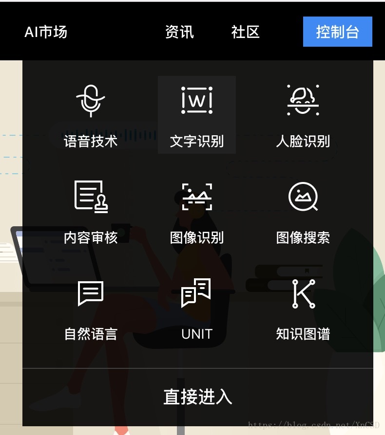打開百度AI開放平臺,進入控制臺中的文字識別應用(需要有百度賬號)。