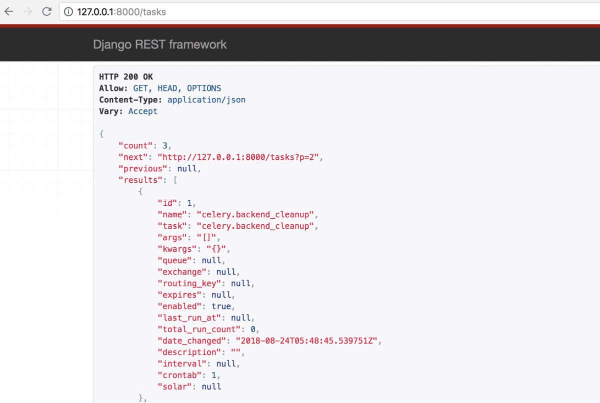django-celery-beat插件本質(zhì)上是對數(shù)據(jù)庫表變化檢查,一旦有數(shù)據(jù)庫表改變,調(diào)度器重新讀取任務(wù)進(jìn)行調(diào)度,所以如果想自己定制的任務(wù)頁面,只需要操作beat插件的四張表就可以了。當(dāng)然你還可以自己定義調(diào)度器,django-celery-beat插件已經(jīng)內(nèi)置了model,只需要進(jìn)行導(dǎo)入便可進(jìn)行orm操作,以下我用django reset api進(jìn)行示例: