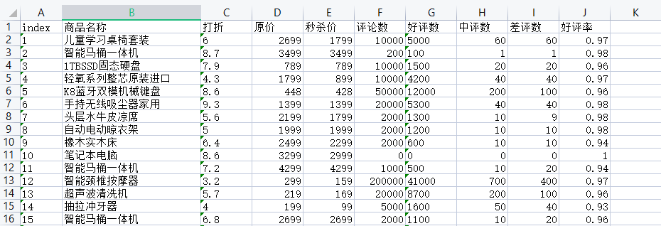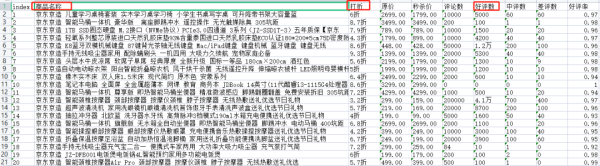 需要清洗的內(nèi)容,主要有圖中這三列(標(biāo)題、打折、好評(píng)數(shù))。