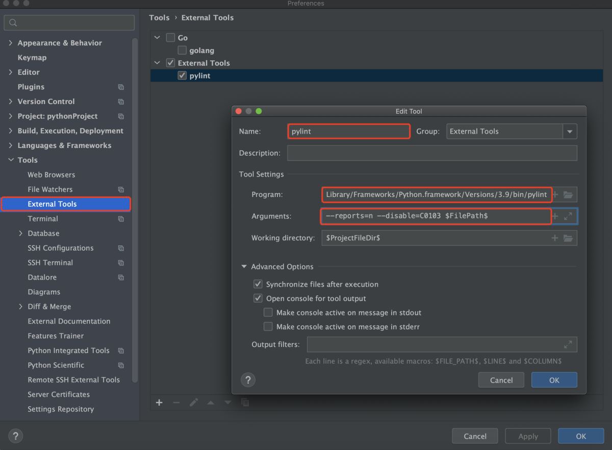 Program:pylint的地址,可以通過which pylint找到地址Arguments:pylint運(yùn)行的參數(shù)2)使用