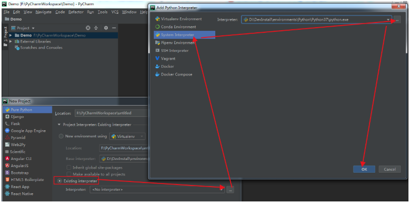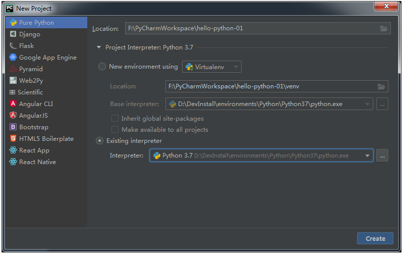 Existing interpreter本地編譯器來創(chuàng)建項目。
