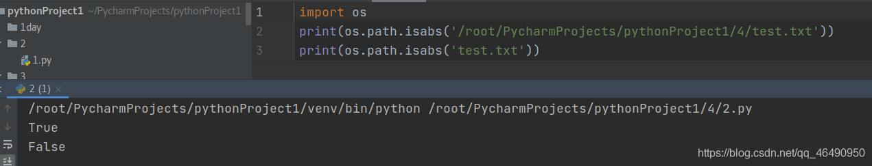 print(os.path.isabs('/root/PycharmProjects/pythonProject1/4/test.txt'))