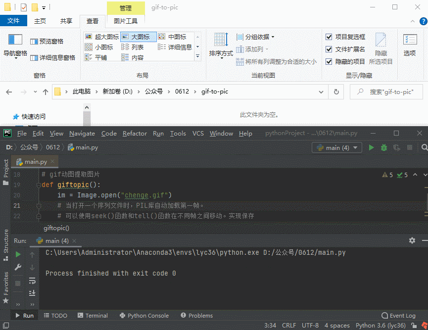 這里將chenge.gif提取圖片,保存到gif-to-pic文件夾中,并從0.jpg開始命名
