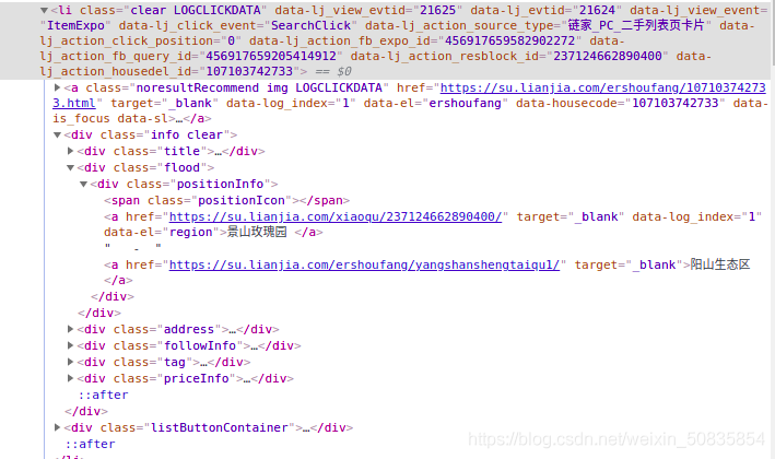 通過控制臺發(fā)現(xiàn)所有房屋信息都在一個(gè)ul中其中每一個(gè)li里存儲一個(gè)房屋的信息。
