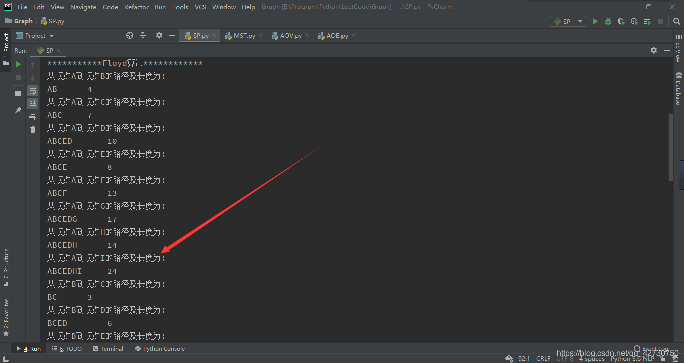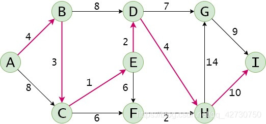這里只看了一條,就是從頂點(diǎn) A A A到頂點(diǎn) I I I的路徑,可以看到 D i j k s t r a Dijkstra Dijkstra算法和 F l o y d Floyd Floyd算法求得的最短路徑都是24。