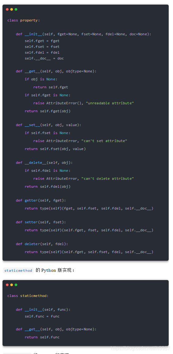其實,我們也可以直接利用 Python 描述符的特性來實現(xiàn)這些裝飾器,