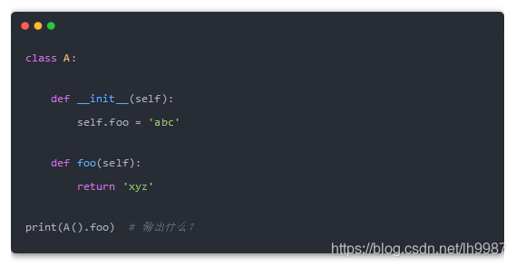 這段代碼,我們定義了一個相同名字的屬性和方法 foo,如果現(xiàn)在執(zhí)行 A().foo,你覺得會輸出什么結果?