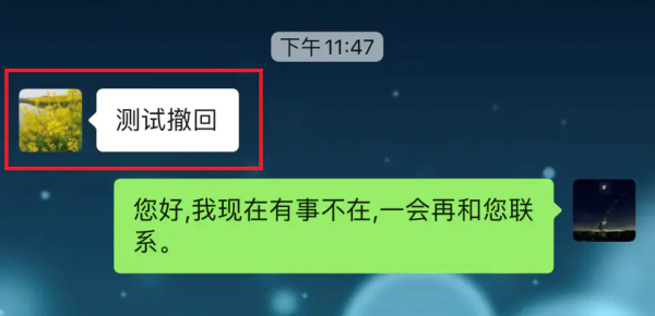 測(cè)試一下,為便于查看,將撤回提醒直接發(fā)給機(jī)器人“小幫幫”