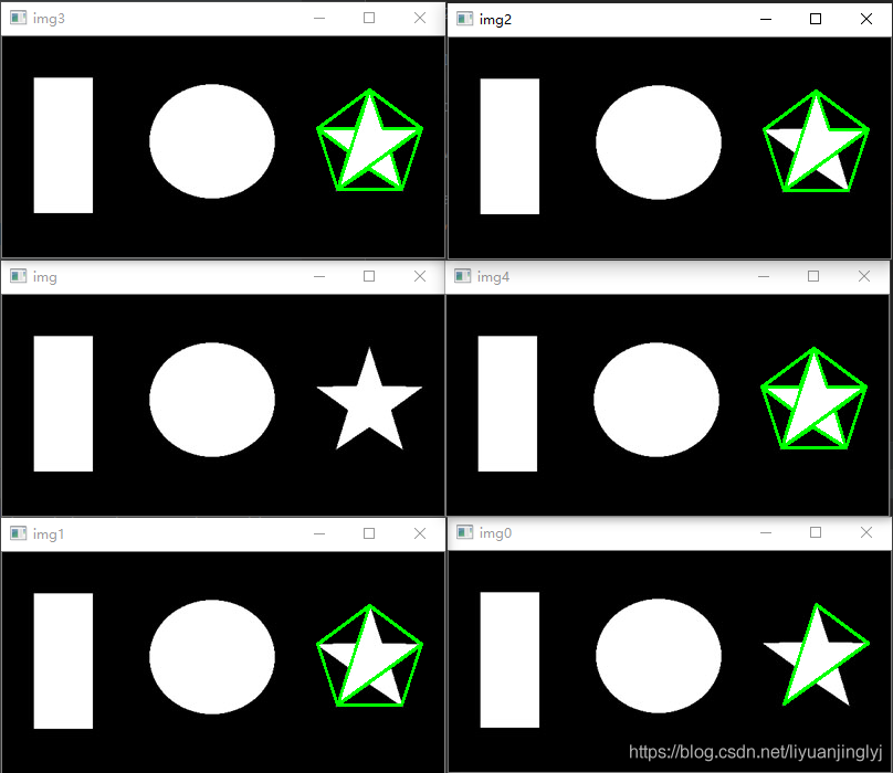 在計(jì)算輪廓時(shí),可能并不需要實(shí)際的輪廓,而僅需要一個(gè)接近于輪廓的近似多邊形。比如矩形其實(shí)都是差不多的輪廓,都是長寬不相等且平行的四邊形,那么只要提供一個(gè)近似的輪廓,我們就可以區(qū)分形狀。
