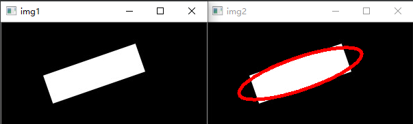 其中points參數(shù)與前文一致,而它的返回值是RotatedRect類型,這是因?yàn)樵摵瘮?shù)返回的是擬合橢圓的外接矩形,包括矩形的質(zhì)心,寬高,旋轉(zhuǎn)角度等信息,這些信息正好與橢圓的中心點(diǎn),軸長度,旋轉(zhuǎn)角度一致。