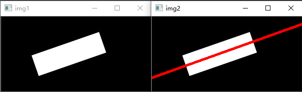 對(duì)于二維直線,返回值line為4維,前兩維代表擬合出的直線的方向,后兩位代表直線上的一點(diǎn)。