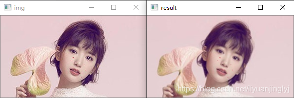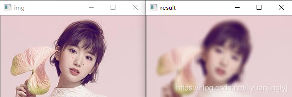 可以看到,這里我們將臉上的紅點(diǎn)去掉了。需要特別注意的是,濾波核的大小必須是奇數(shù),矩陣中心點(diǎn)向外衍生必然是奇數(shù),不信可以隨便矩陣取一點(diǎn)試試。