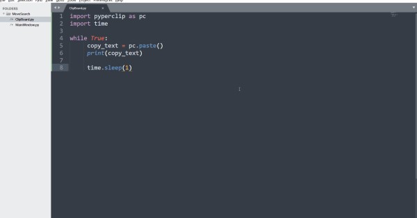 在這里呢,我已經(jīng)成功安裝了代碼的了,接下來我們嘗試一下庫的功能,我們先建立一個循環(huán),一直返回我們從剪切板獲取的數(shù)據(jù)