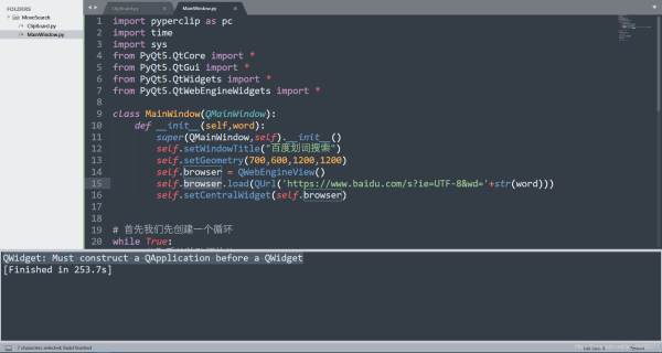 我們現(xiàn)在要編寫一個打開外部網(wǎng)頁的辦法。這個時候呢有很多種選擇,那么這里我選擇大概是大家比較常用的庫——PyQt5來操作。其實最近呢QT也開發(fā)了一個新的Python接口,有興趣的小伙伴們可以修改代碼做一些嘗試