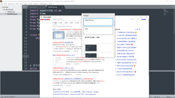 之后我們雙擊點入這個文件夾,創(chuàng)建一個“MainWindow.py”的程序和“Clipborad.py”這兩個程序