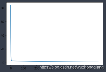上面的代碼中,我沒有進(jìn)行手動(dòng)清零,迭代1000次, 把每一次的loss放到來result中, 然后畫出圖像,感受一下結(jié)果: