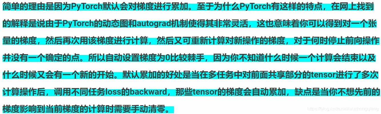 這次主要是記錄一下,pytorch在進(jìn)行反向傳播計(jì)算梯度的時(shí)候的累加機(jī)制到底是什么樣子? 至于為什么采用這種機(jī)制,我也搜了一下,大部分給出的結(jié)果是這樣子的: