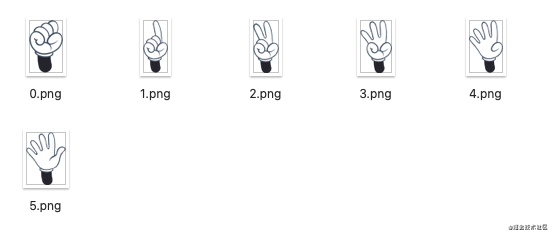 準(zhǔn)備6張圖片,分別是6張手的圖片。