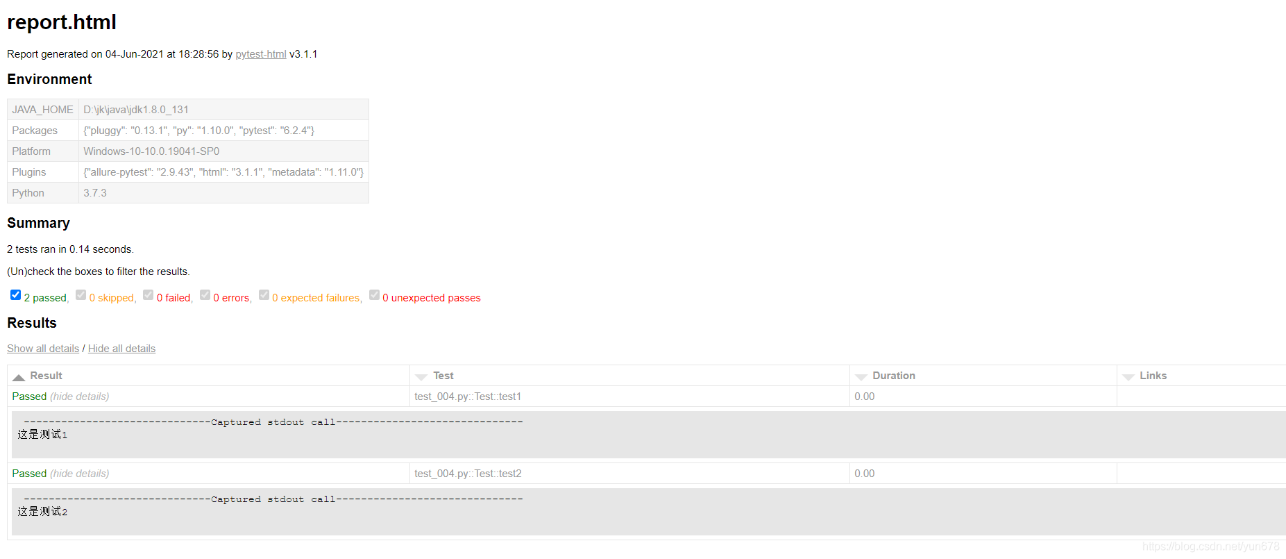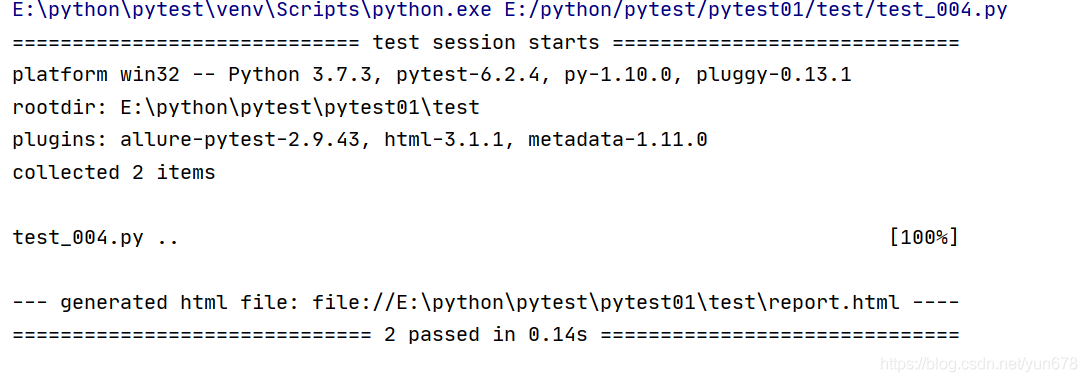 前提條件:需要下載pytest-html模塊(python自帶的生成測試報告模塊)