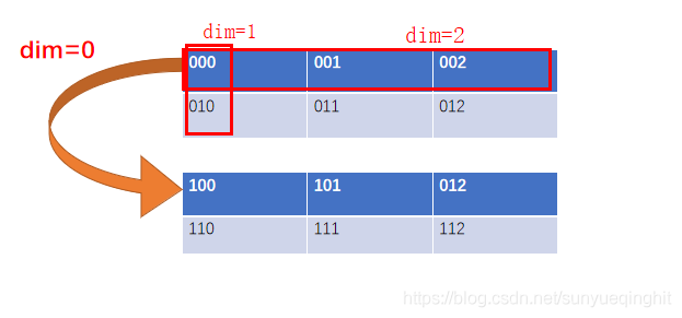 dim=0時(shí),在第0維上sum=1,即: