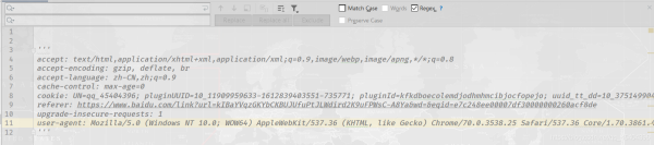 而是PyCharm的正則功能,我們?cè)赑yChram的界面上按上Ctrl+R,可以發(fā)現(xiàn),這里出現(xiàn)兩行輸入框