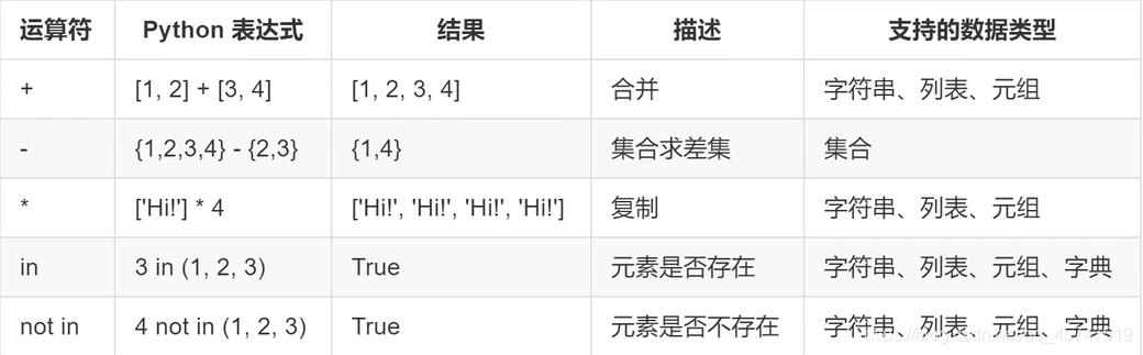 - 七、五種數(shù)據(jù)類型所支持的運算符比較