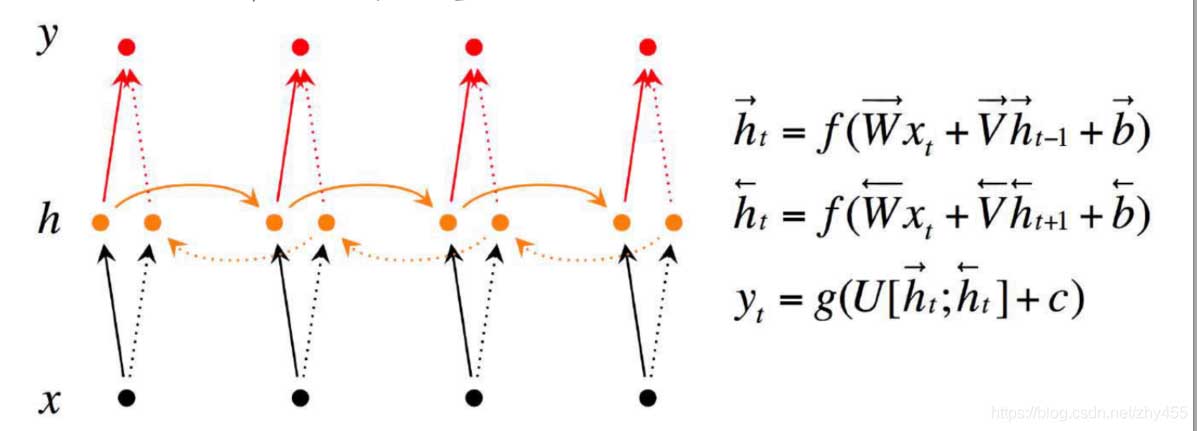 重點要看藍色的部分,即反向的狀態(tài)值對應的是原始數據中最其實的序列輸入。因為是反向RNN,在反向循環(huán)時,是會把序列中最后的放在最前面,所以反向網絡的生成結果就會與最開始的序列相對應。