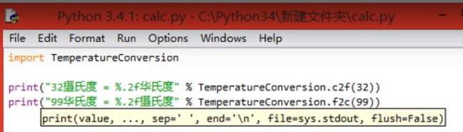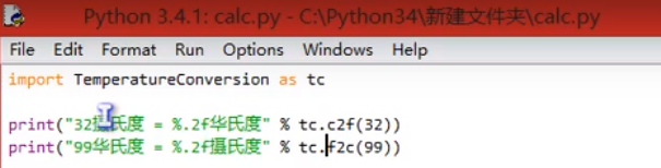 在calc.py中調(diào)用TemperatureConversion模塊,其結(jié)果