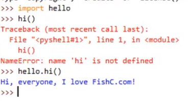 - 導入hello模塊,且使用hello命名空間的hi()函數(shù)
