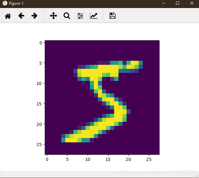 查看mnist數(shù)據(jù)集中第一張圖片: