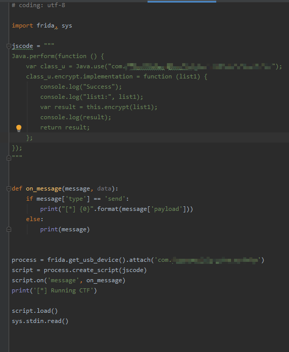 Java不太熟,分析不來(lái),直接使用 frida 來(lái)寫一段 hook 代碼看一看 encrypt 函數(shù)入?yún)⒑统鰠⒌膬?nèi)容: