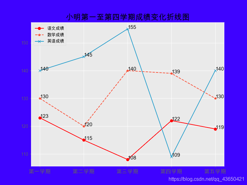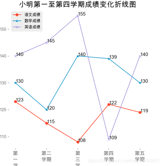 x_label = ['第一學(xué)期','第二學(xué)期','第三學(xué)期','第四學(xué)期','第五學(xué)期']