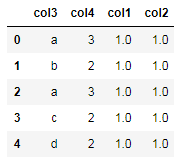 df=df.reindex(columns=['col3','col4','col1','col2']) #將新增的一列排在第一列