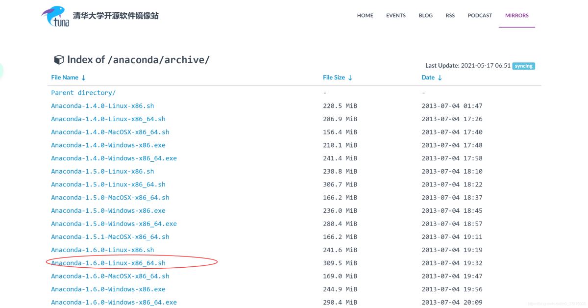 下載Aconada鏡像地址: https://mirror.tuna.tsinghua.edu.cn/help/anaconda/