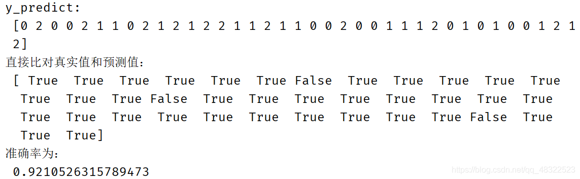 print("直接比對真實(shí)值和預(yù)測值:\n", y_test == y_predict)