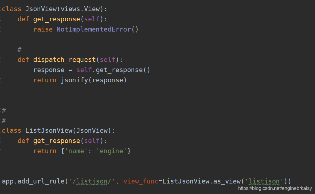 類視圖映射——app.add_url_rule('/路徑/', view_func=類視圖名稱.as_view(‘取名')) 字典數(shù)據(jù)返回轉(zhuǎn)換json數(shù)據(jù)——用jsonify()——需要導包