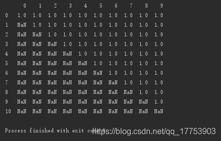 # 按行刪除:所有數(shù)據(jù)都為空值,即刪除該行 print(d.dropna(axis=0, how='all'))