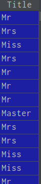 title_mapping = {"Mr": 1, "Miss": 2, "Mrs": 3, "Master": 4, "Rare": 5}#將標(biāo)簽對應(yīng)數(shù)值