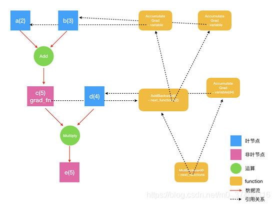 如果 e.grad_fn.next_functions 中有哪個(gè)是 AccumulateGrad ,則把結(jié)果保存到 AccumulateGrad 的variable引用的變量中。
