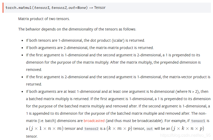 3、matmul可以進行張量乘法, 輸入可以是高維.