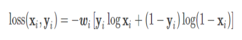 簡單來說,就是度量兩個概率分布間的差異性信息,在某一程度上也可以防止梯度學習過慢,公式可見下,Pytorch調用函數有兩個,一個是nn.BCELoss函數,用的時候要結合Sigmoid函數,另外一個是nn.BCEWithLogitsLoss()