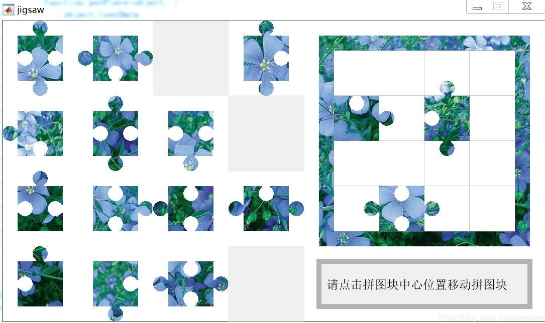 text1=text(430,350,'請點擊拼圖塊中心位置移動拼圖塊','fontSize',12);